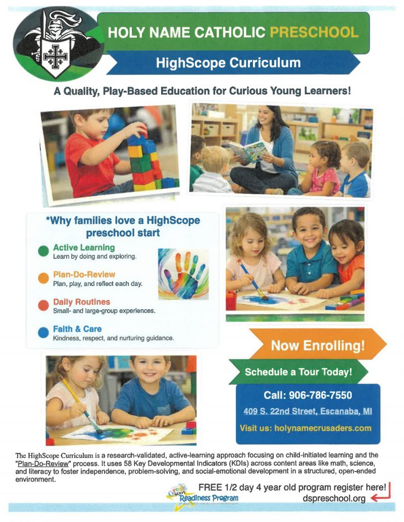 Holy Name Catholic PreSchool – HighScope Curriculum A Quality, Play-Based Education for Curious Young Learners! Learn more and register here now! hnc-admin2026-04-17T02:11:36-04:00 Like this story? Share the Good News . . . FacebookXLinkedInPinterestEmailCopy Link Related Posts Help us put the FLING in Spring Fling? Gallery Help us put the FLING in Spring Fling? March 25th, 2026 Spring Fling 2026 Gallery Spring Fling 2026 March 12th, 2026 Book Fair Gallery Book Fair March 11th, 2026 Student Life flyer Gallery Student Life flyer March 10th, 2026 Save the Date: Pasta Dinner for our Rome Pilgrims Gallery Save the Date: Pasta Dinner for our Rome Pilgrims March 9th, 2026